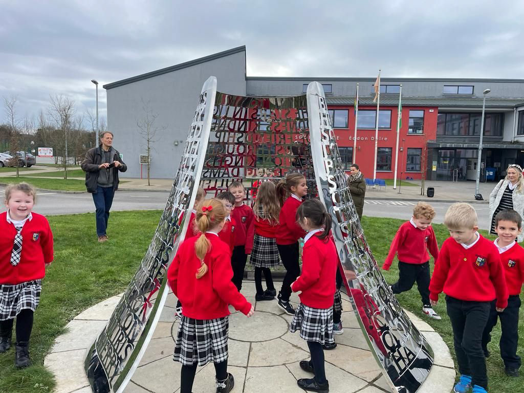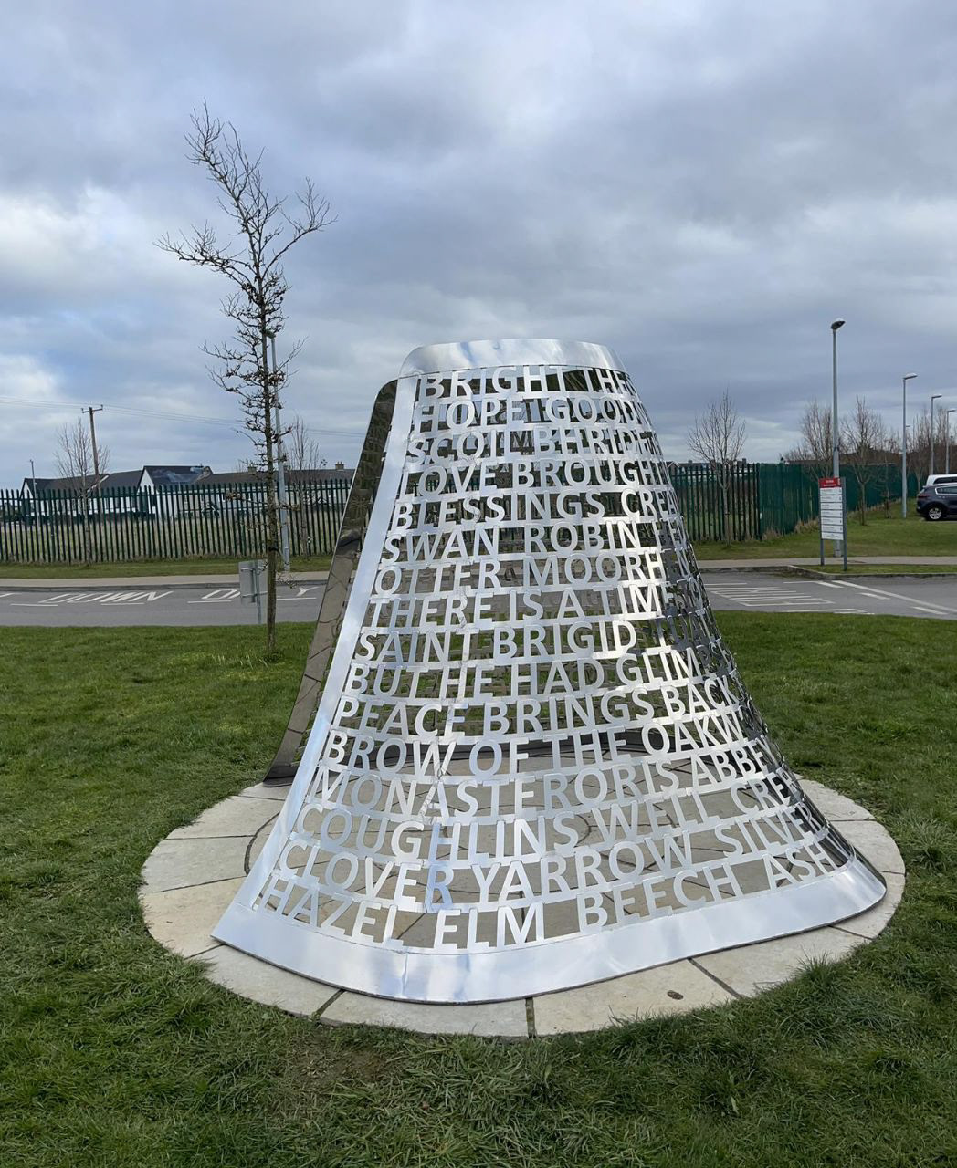 Semblance is an installation commission for Scoíl Bhríde National School in Edenderry, Co Offaly. The sculpture was created via arts participation in collaboration with 100 students, staff members and contributions from local authors.
